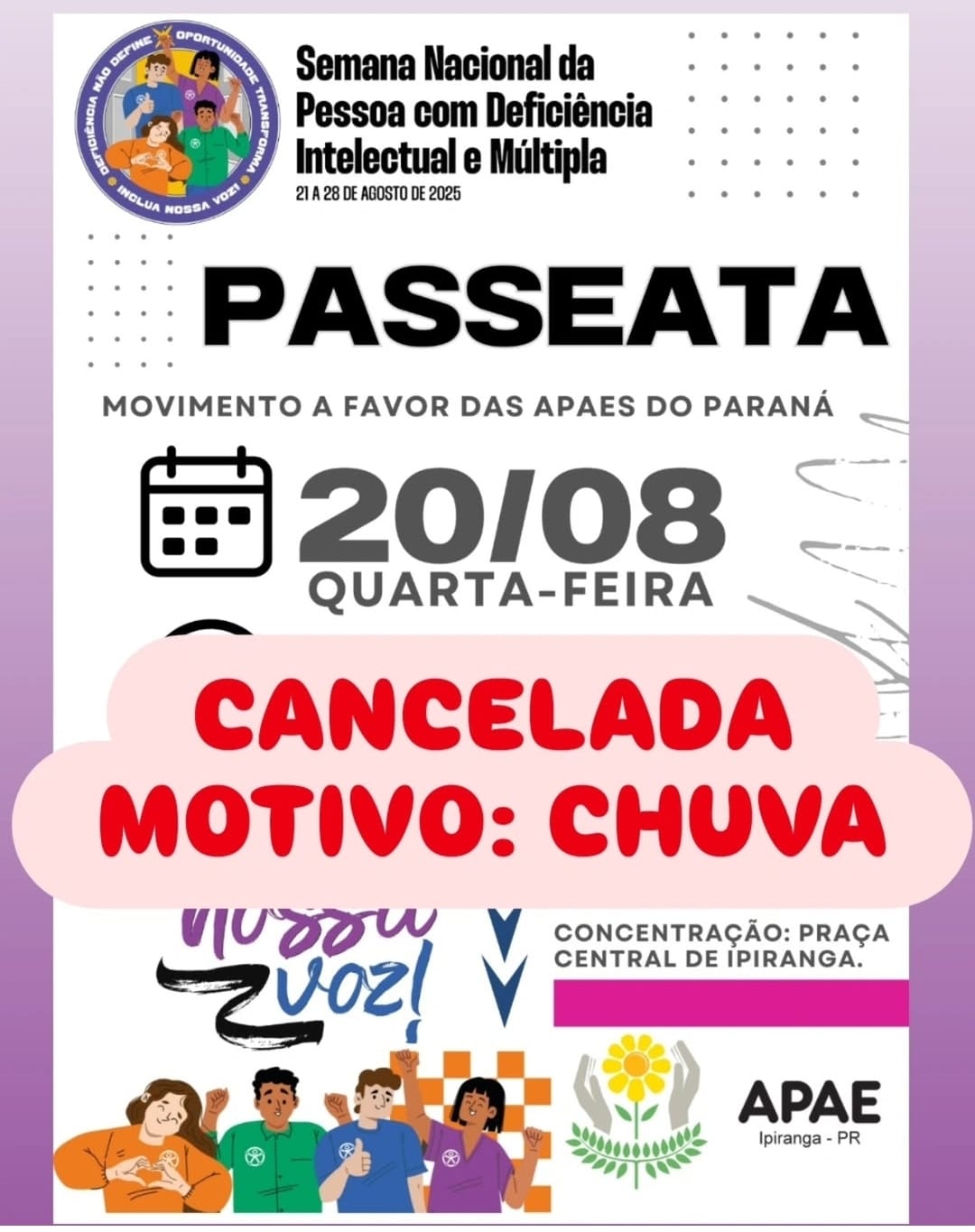 CANCELADO!!!NÃO VAI ACONTECER!!!📢 Convite Especial Boa tarde! Com muito respeito, venho fazer um convite: amanhã, às 8h30, realizaremos uma passeata em defesa das Escolas Especiais.