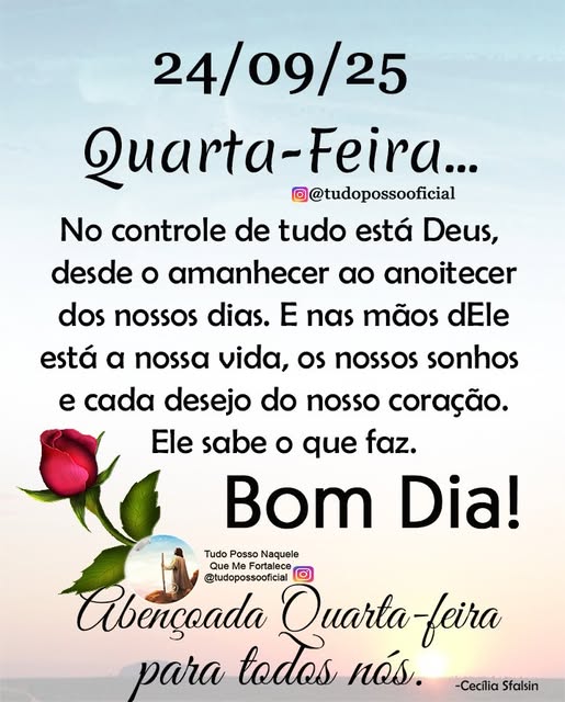 Que esse dia seja de paz, de aprendizado e de confiança nos planos d’Ele, que sempre são perfeitos. 🙏✨