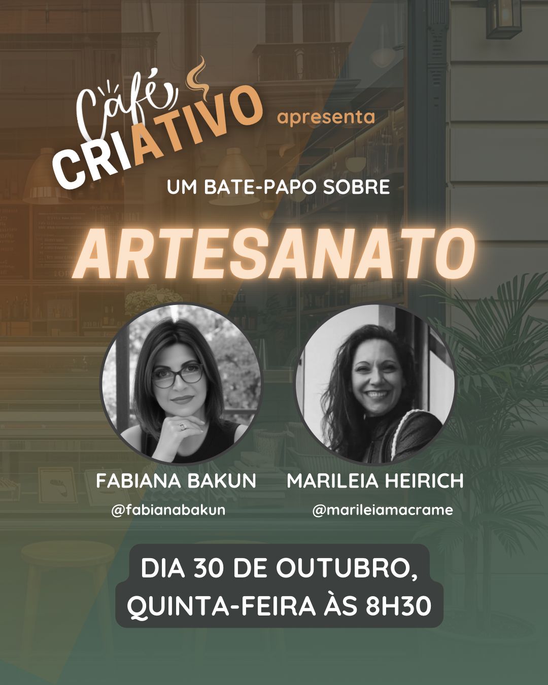 ☕ Nesta quinta-feira, dia 30/10, o Café Criativo recebe Marileia Heirich para um bate-papo inspirador sobre o tema “Artesanato”.