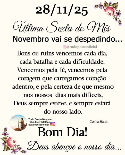 🌤️✨ Bom dia, sexta-feira especial! ✨🌤️ A última sexta de novembro chegou trazendo leveza e esperança.
