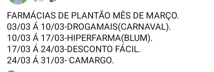 A população sempre pergunte e sempre quer saber...Farmácias de Plantão março de 2025