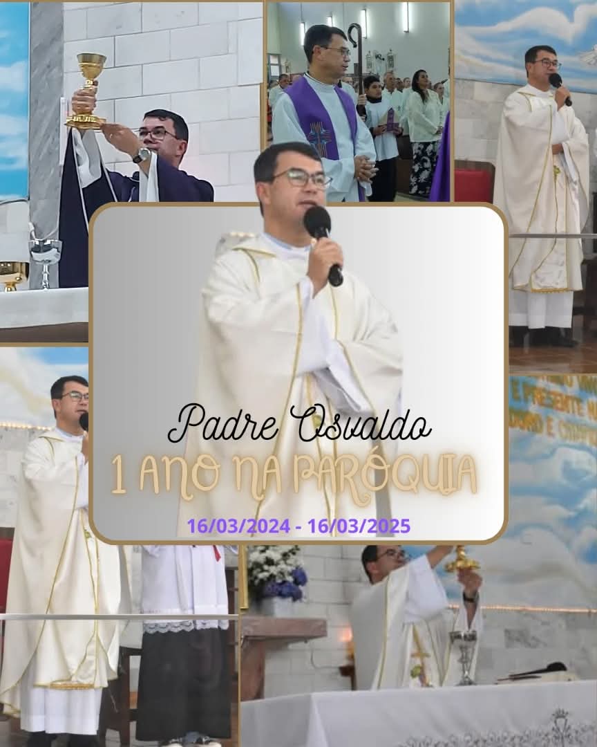 Neste momento especial, ao celebrarmos o primeiro ano da presença do Padre Osvaldo em nossa paróquia, queremos expressar nossa gratidão a Deus por nos presentear com sua presença e agradecer grandemente ao Senhor Padre, pelo Amor e dedicação com que tem exercido sua missão pastoral. Como homem de misericórdia e compaixão, o Senhor tem sido um verdadeiro reflexo de Jesus, com um coração que se comove pelos seus paroquianos e se coloca à disposição para servir, dando seu sim todos os dias. Que a Imaculada Conceição interceda junto a Jesus por sua missão e o Espírito Santo o inspire a continuar com alegria e sabedoria, assumindo a cruz de cada dia e nos orientando na vivência do amor cristão.
