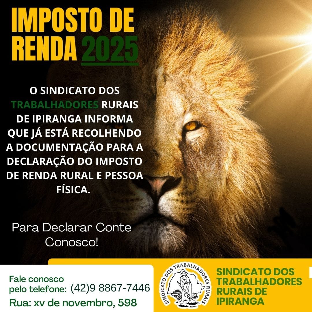 📢 Atenção ! O Sindicato dos trabalhadores Rurais está realizando a declaração do Imposto de Renda 2025!