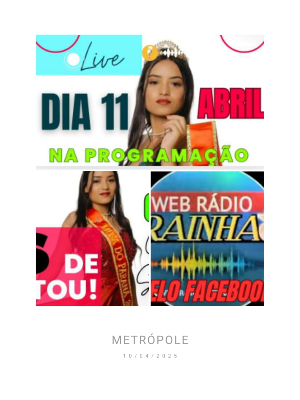 A https://radiorainhaipirangapr.com.br/nessa sexta-feira dia 11 de abril recebe a Musa Do Pr,candidata a Mis Do Brasil,@Kelin Sabrina nos studios pra um super bate papo! Uma entrevista mostrando toda trajetória da Musa Paraná