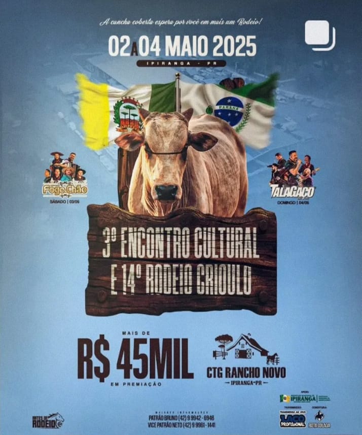 3º Encontro Cultural & 14º Rodeio Crioulo Dias 02 a 04 de maio de 2025 do CTG Rancho Novo – Ipiranga/PR