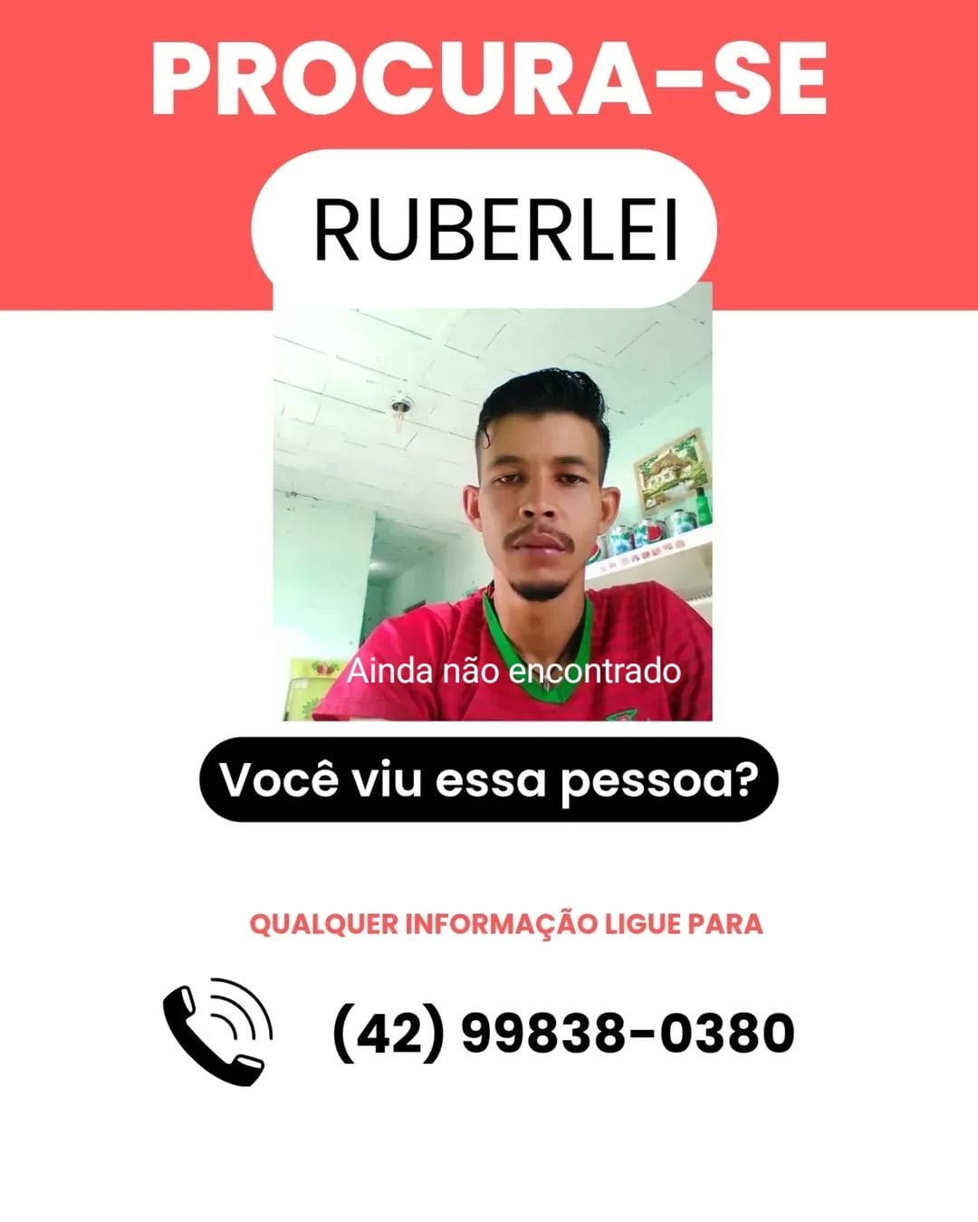 Ruberlei Coimbra 34 anos, nascido no dia 10 de setembro de 1990, está desaparecido e sua família e amigos estão desesperados a sua procura.