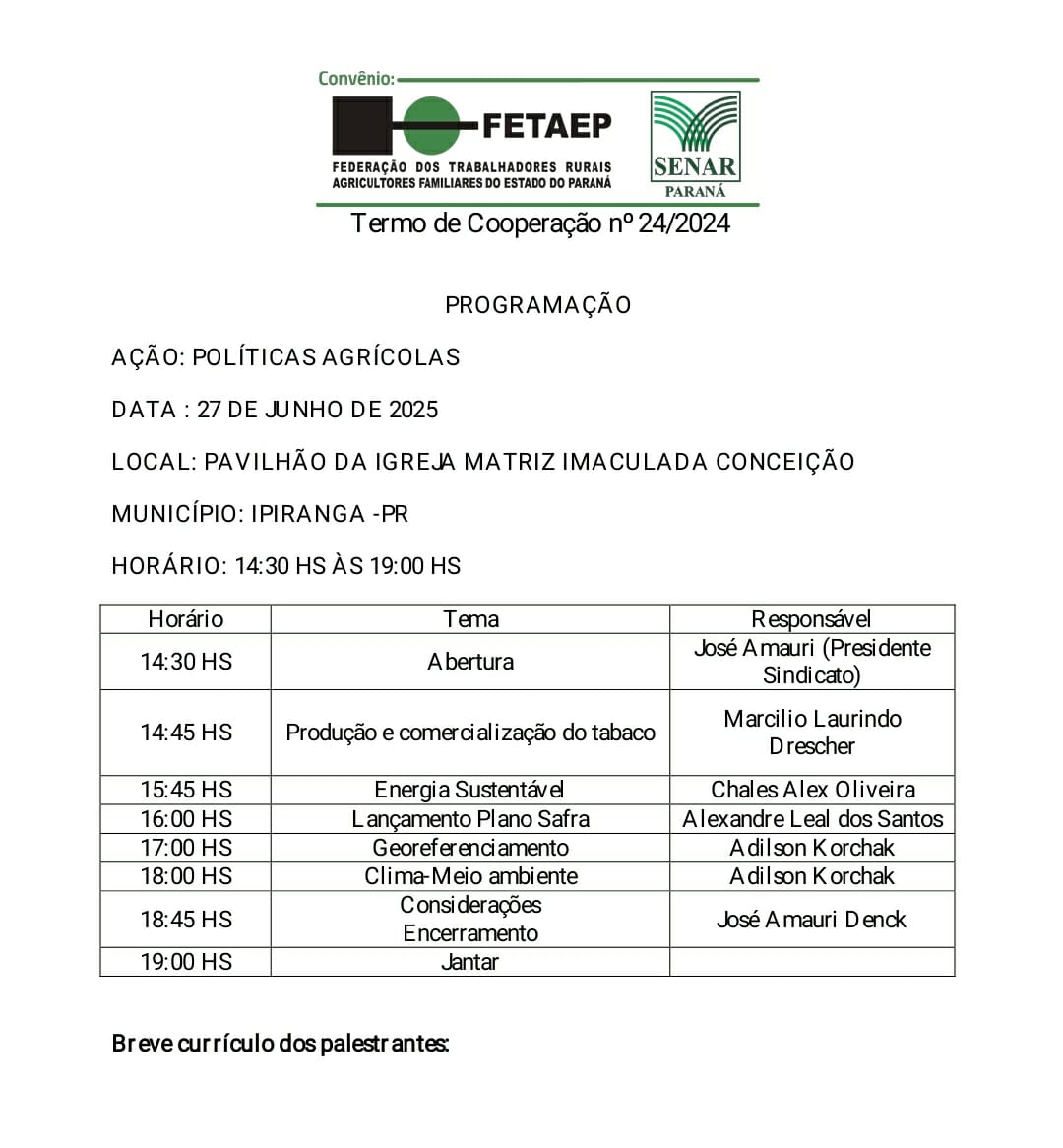 CONVITE ESPECIAL PARA TODOS OS AGRICULTORES DE IPIRANGA-Pr, PARA ESSA SEXTA FEIRA DIA 27/06/2025!!!!