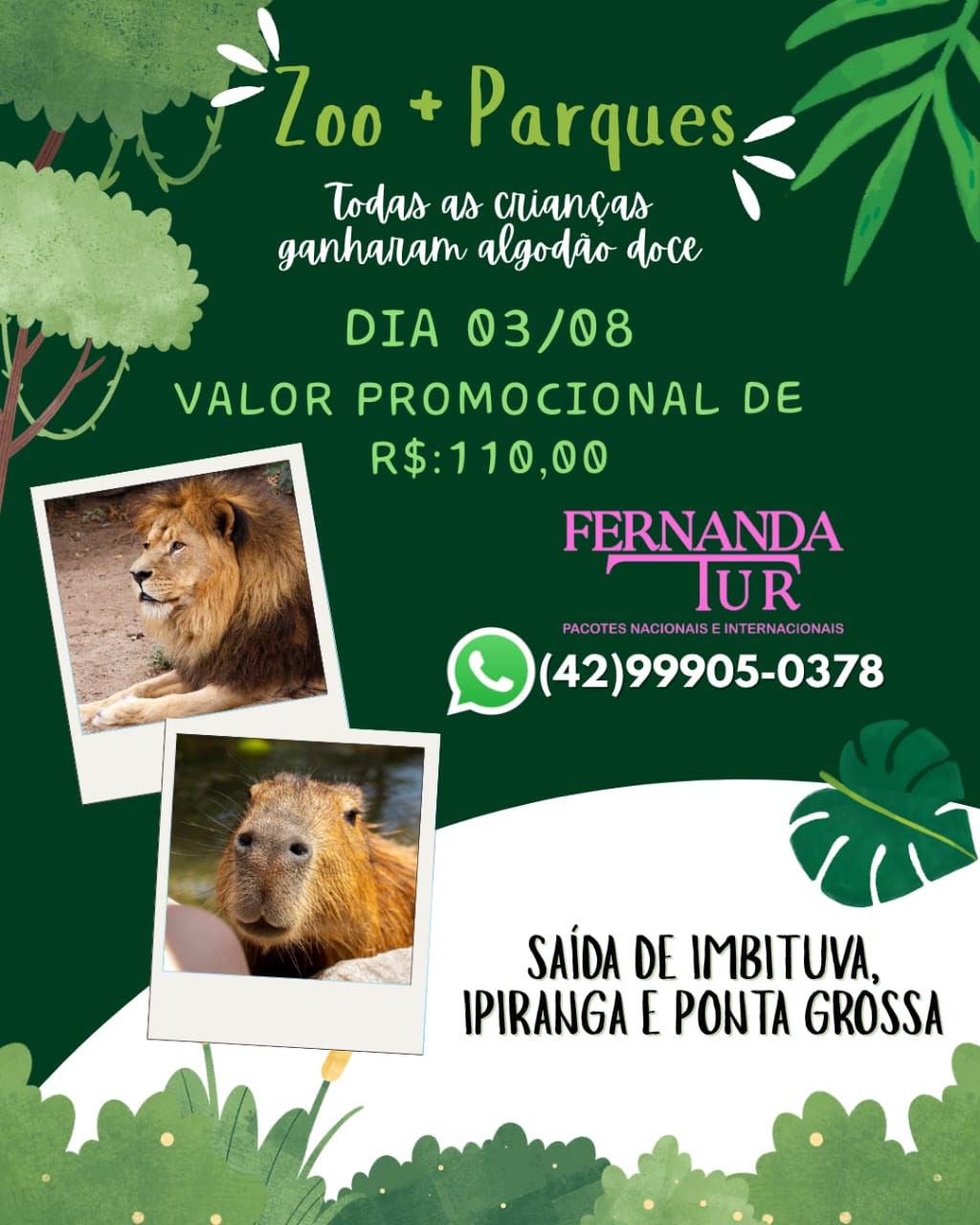🐾 PASSEIO PARA O ZOOLÓGICO E PARQUES DE CURITIBA 📆 Neste domingo! 💰 Apenas R$110 por pessoa 👶 Crianças até 5 anos no colo não pagam 💳 Valor pode ser parcelado