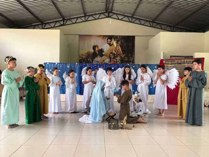 As crianças da Catequese nos encantaram hoje com uma linda representação do nascimento do Menino Jesus.